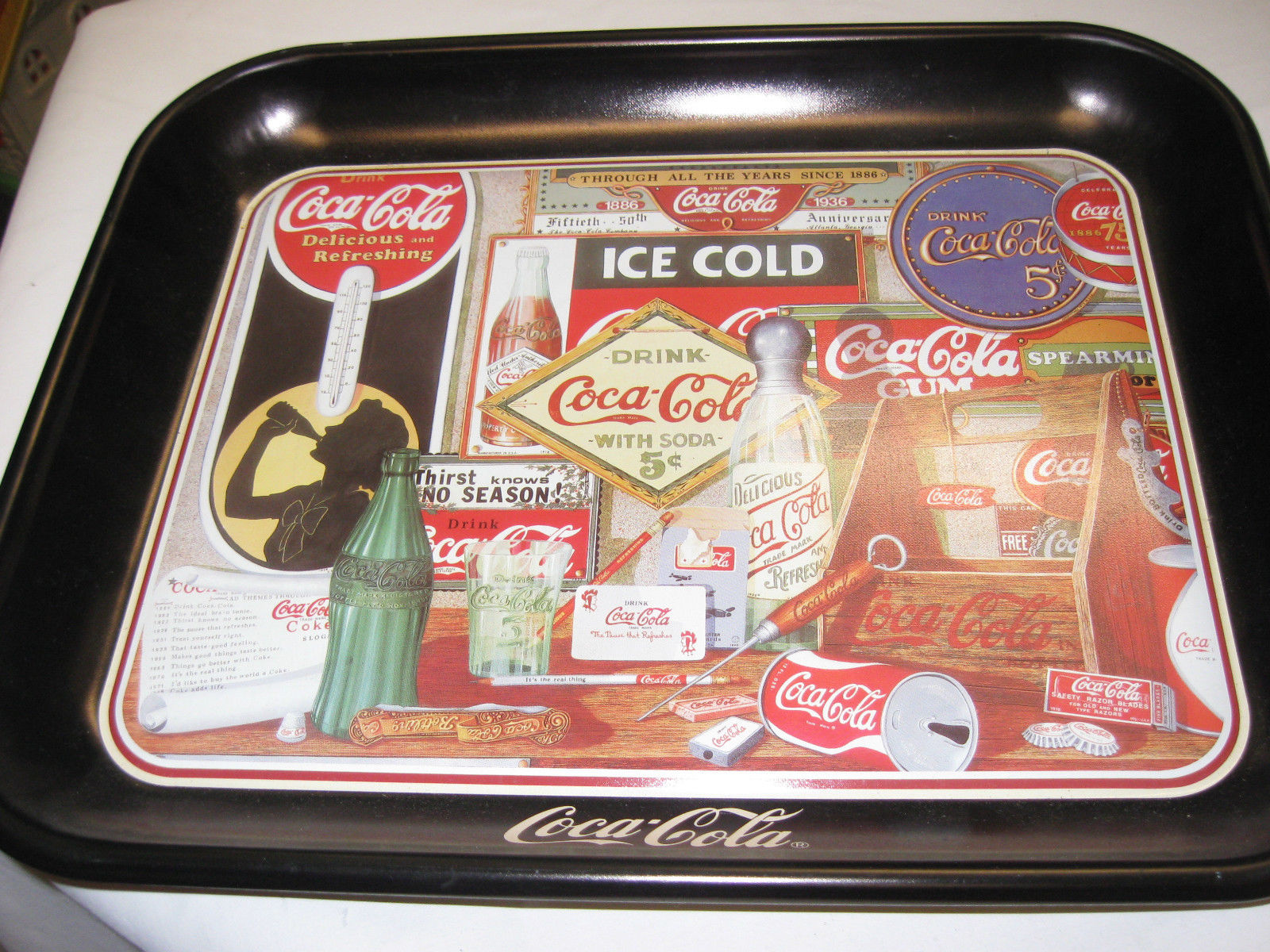 Title (ebay affiliate link): Vintage Coca Cola Metal Serving Tray "Through the Years" dated 1990 13" x 10.5"