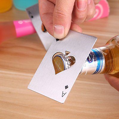 Title (ebay affiliate link): Funny Bottle Opener Stainless Steel Credit Card Size Beer Bar Blade Spade Ace