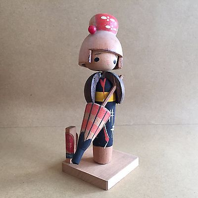 Girl & Umbrella Kokeshi 12.3cm Taisekiji Shizuoka Japan Antique Wooden Doll BGPe
