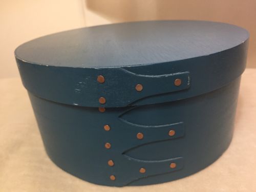 Title (ebay affiliate link): Shaker Round Wooden Blue Box 7 X 7 X 3.25 Bids@$8.99 Amazing Preowned Condition