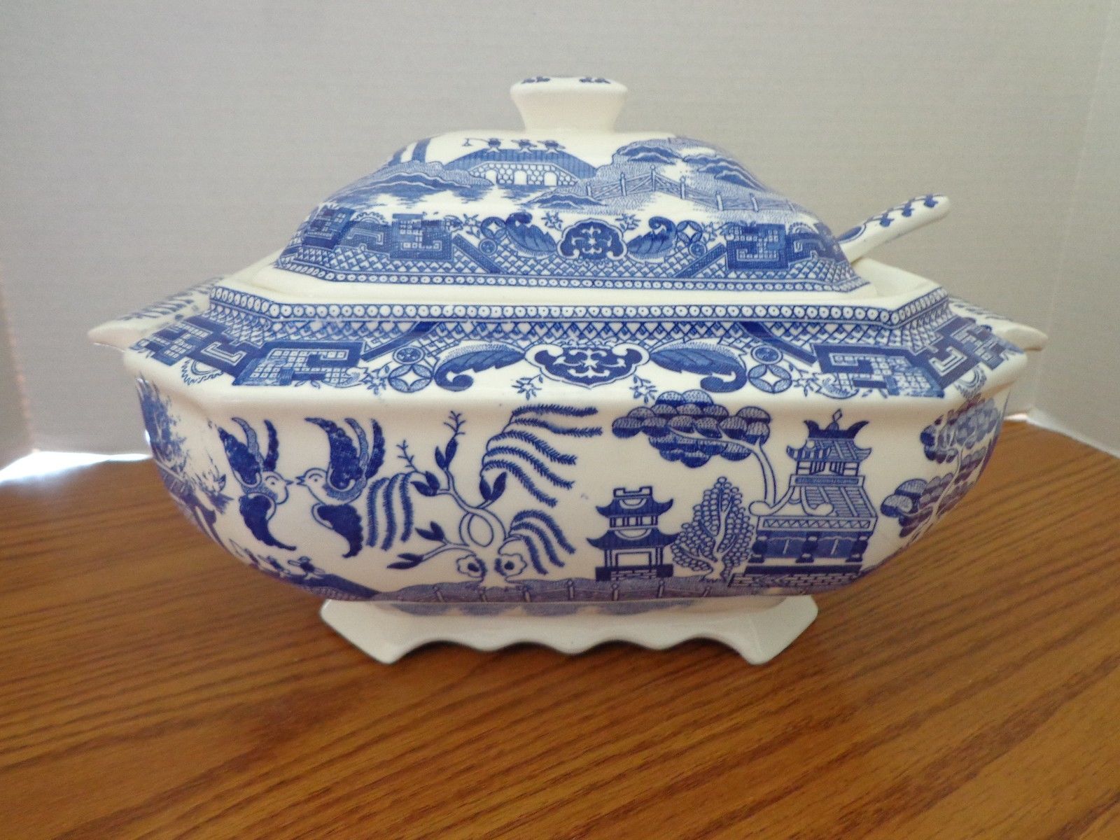 Vintage Japan Blue Willow 3 Quart Soup Tureen w/Ladle