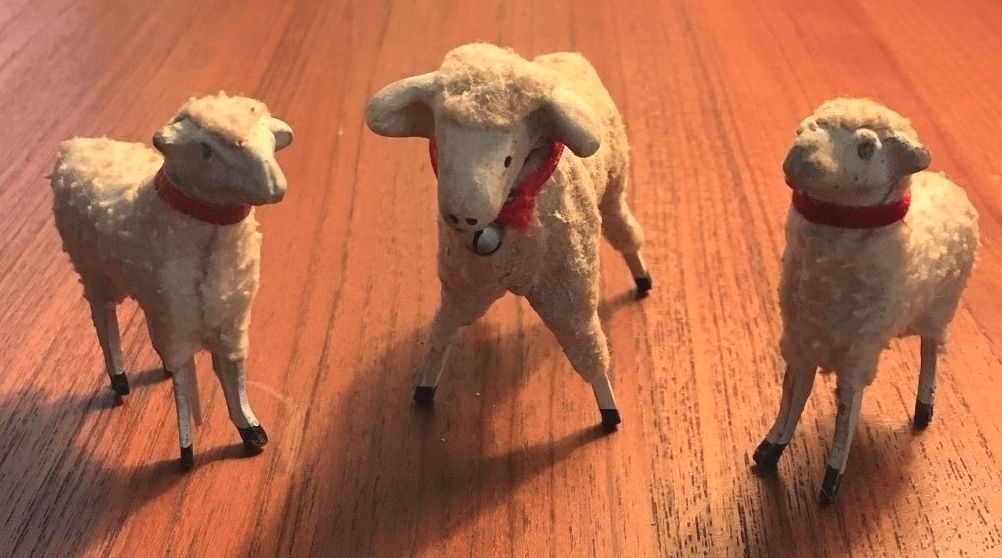 Title (ebay affiliate link): THREE ANTIQUE/VINTAGE FOLK ART SHEEP with RED COLLARS- MARKED GERMANY