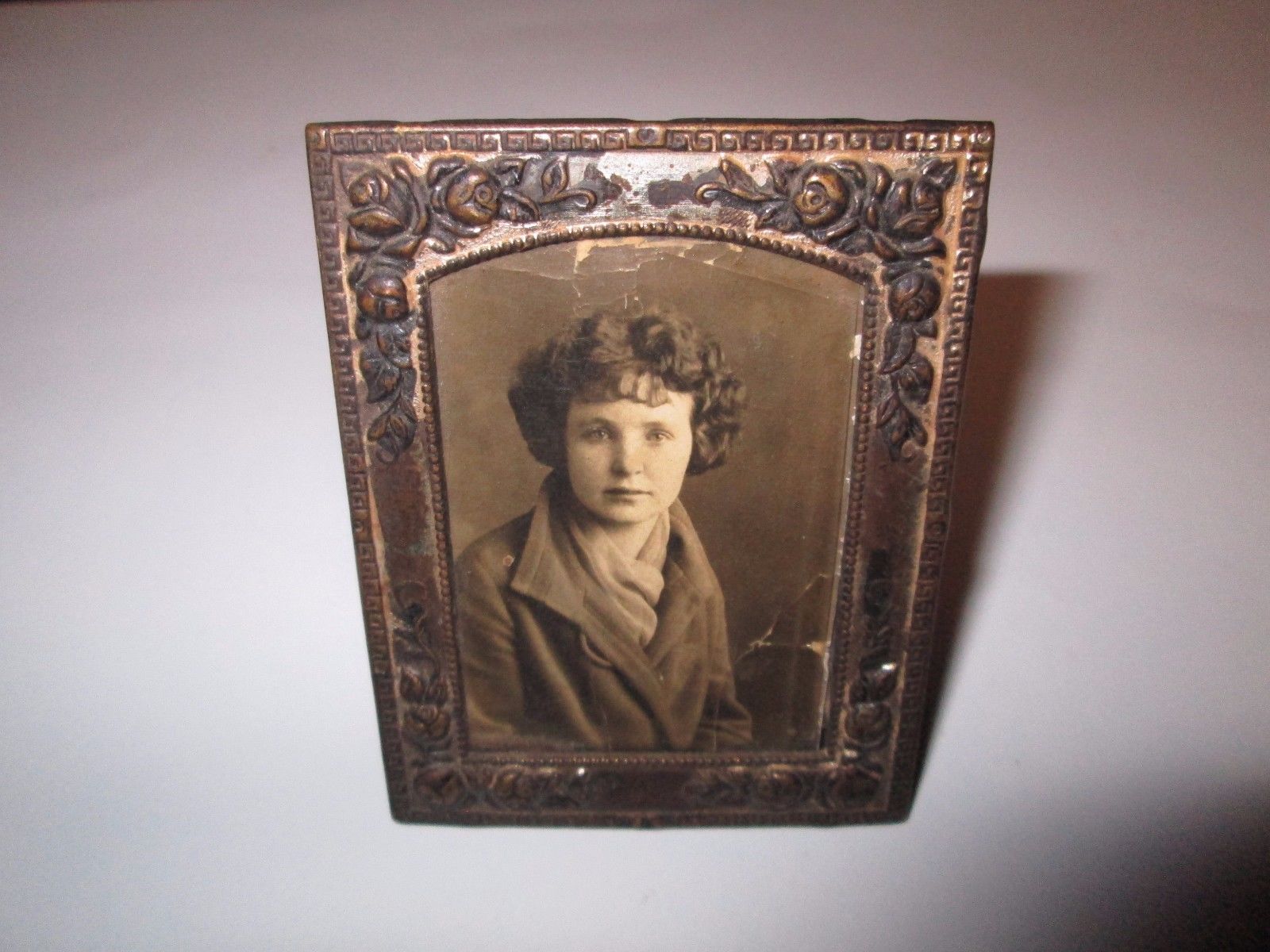 Title (ebay affiliate link): Vintage Ornate Decorative Miniature Metal Picture Frame w/ Picture & Stand
