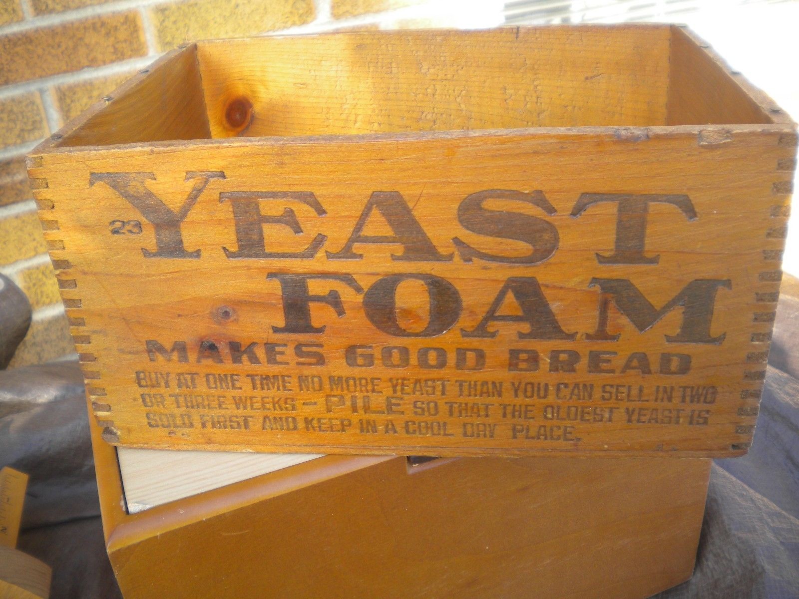 Title (ebay affiliate link): Vintage Wooden Box Yeast Foam Finger Jointed Nice Size Great Graphics