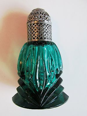 VINTAGE CZECH/BOHEMIAN GREEN GLASS PERFUME BOTTLES Crown ART DECO Glass Dauber