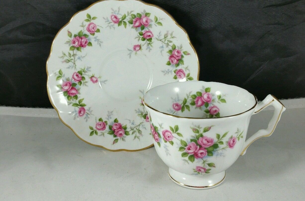 Aynsley English Bone China Teacup and Saucer "Grotto Rose "