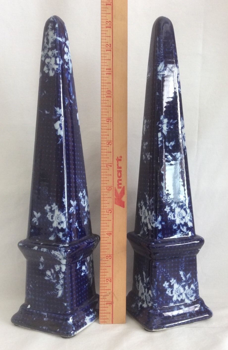 Title (ebay affiliate link): Pair of Cobalt Blue And White 13" Tall Four Sided Obelisk Ceramic Beautiful
