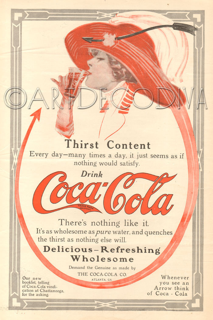 Antique 1912 Coca-Cola RED HAT Edwardian Feather Woman COKE GLASS Poster Art Ad