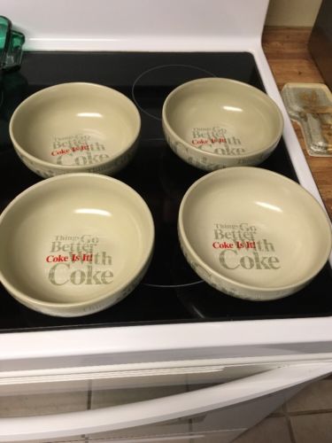 Title (ebay affiliate link): Coca Cola Anchor Hocking Slogan Collage Taupe Stoneware Soup Bowl Set Of 4