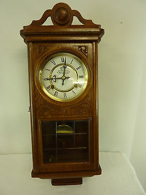 Wall clock. P Watts and son antique repro. Chimes, working, VGC #CR#
