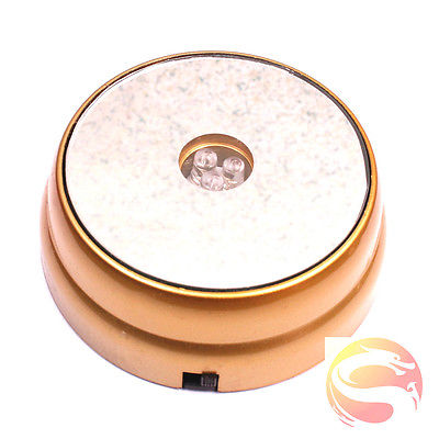 New 3 LED Light Round Display Stand Base For Crystal Ball Paperweight Glass Gold