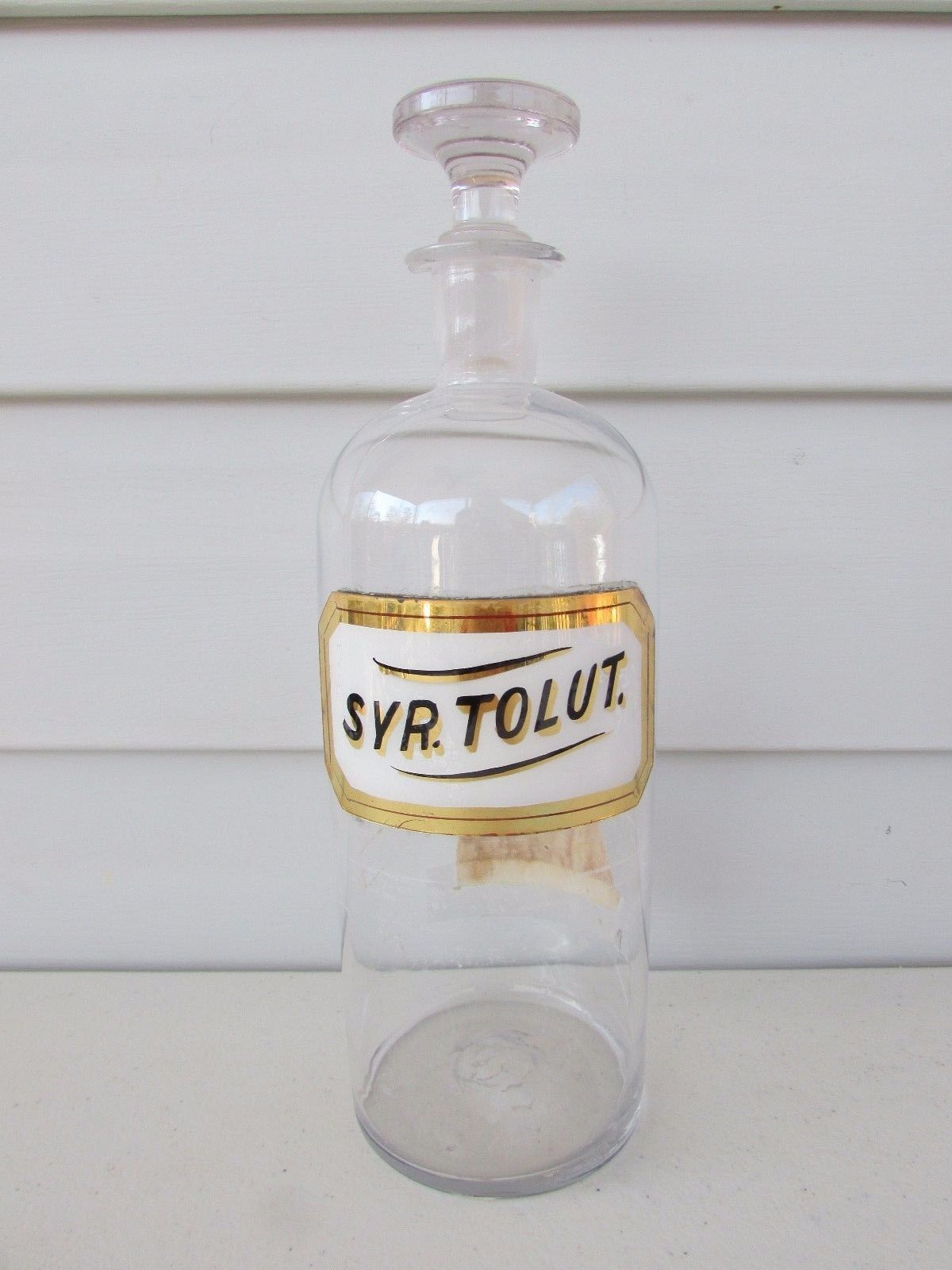 Title (ebay affiliate link): ANTIQUE LABEL UNDER GLASS APOTHECARY - SYR. TOLUT. ~ BOTTLE w STOPPER