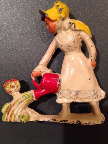 Title (ebay affiliate link): Manoil Barclay Toy Lead Figure Happy Farm Girl Watering Garden M159 USA Made