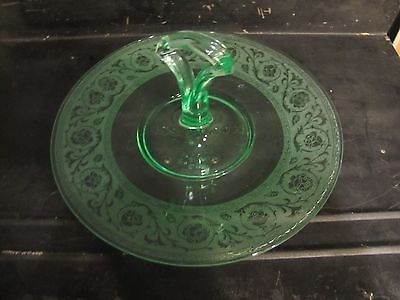 VINTAGE GREEN GLASS DEPRESSION SERVER PLATE WITH HANDLE