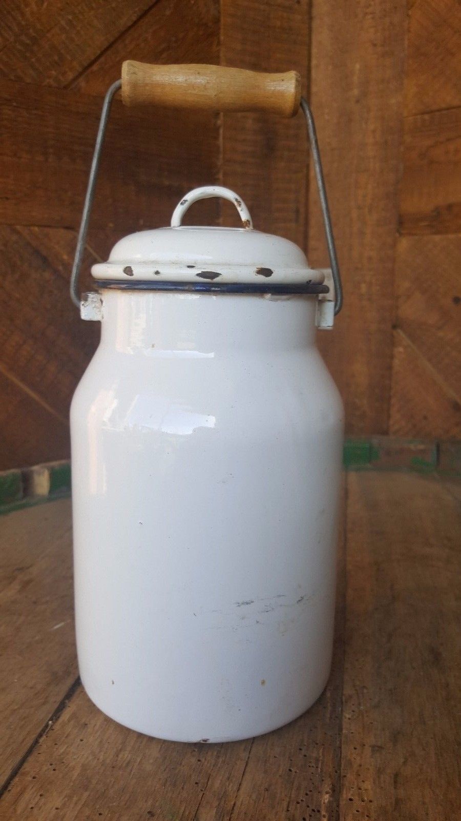 Title (ebay affiliate link): Antique Enamelware Milk Can W/ Lid ~ Vintage Primitive Farm Cow Decor 5950