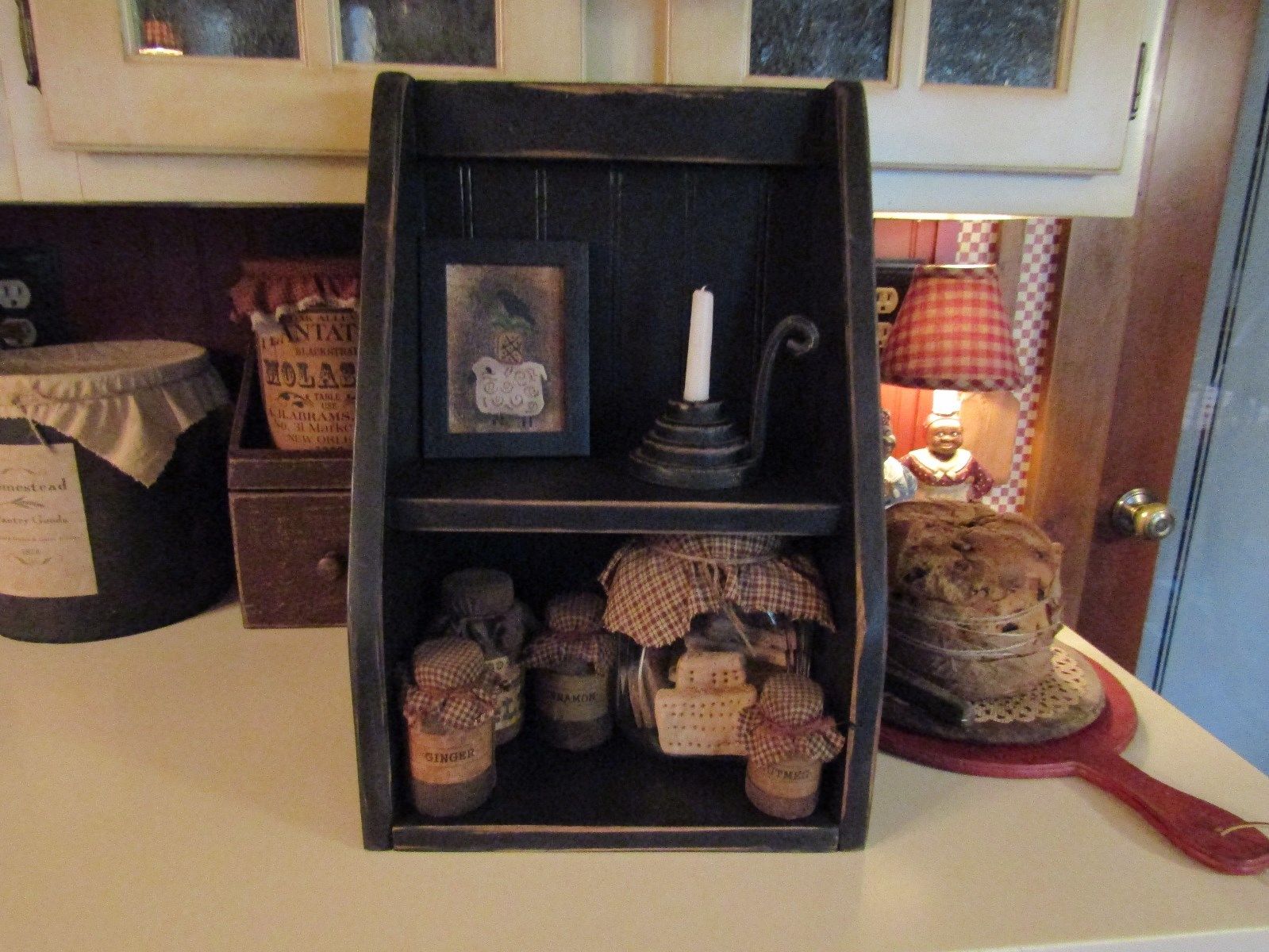 Title (ebay affiliate link): PRIMITIVE WOODEN FARMHOUSE CUPBOARD FOR CROCKS/COOKBOOKS/PRIM COLLECTIBLES