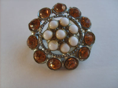 Vintage Citrine Milk White Glass Bead Brooch