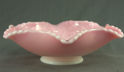 Fenton Pink Milk Glass Ruffled Bowl-Dogwood