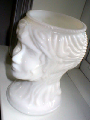 Vintage Milk Glass Womans Head Vase Planter 5" nice
