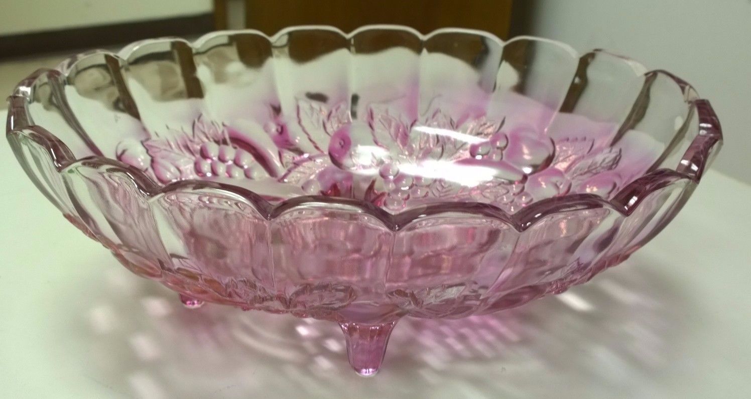 Title (ebay affiliate link): Antique Carnival Glass Large Footed Bowl Grapes Clear & Iridescent Pink/Purple
