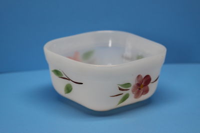 Fire King Milkglass Square Bowl Pink Flowers