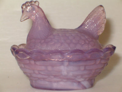 PURPLE MILK GLASS HEN CHICKEN ON NEST DISH ROOSTER SLAG