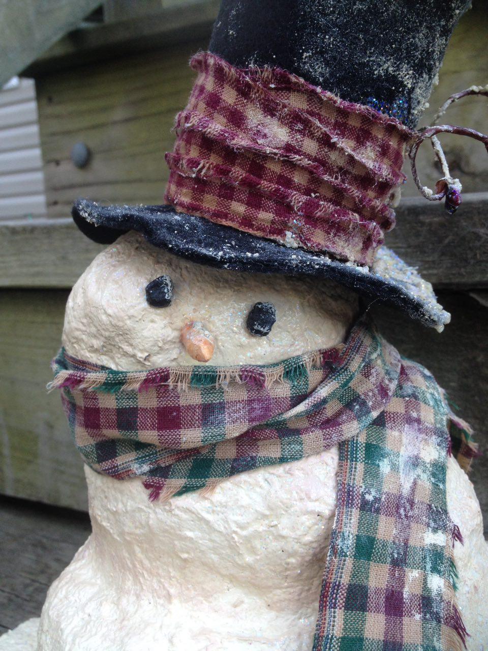 Handmade Primitive Country Christmas Snowman Sculpture Shelf Decor & Hang Tag