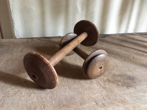 Title (ebay affiliate link): Pair Set Early Antique Wooden Treen Thread Spools Patina Great Form AAFA