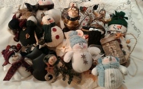Title (ebay affiliate link): 18 piece lot assorted snowman ornaments country prim ornies