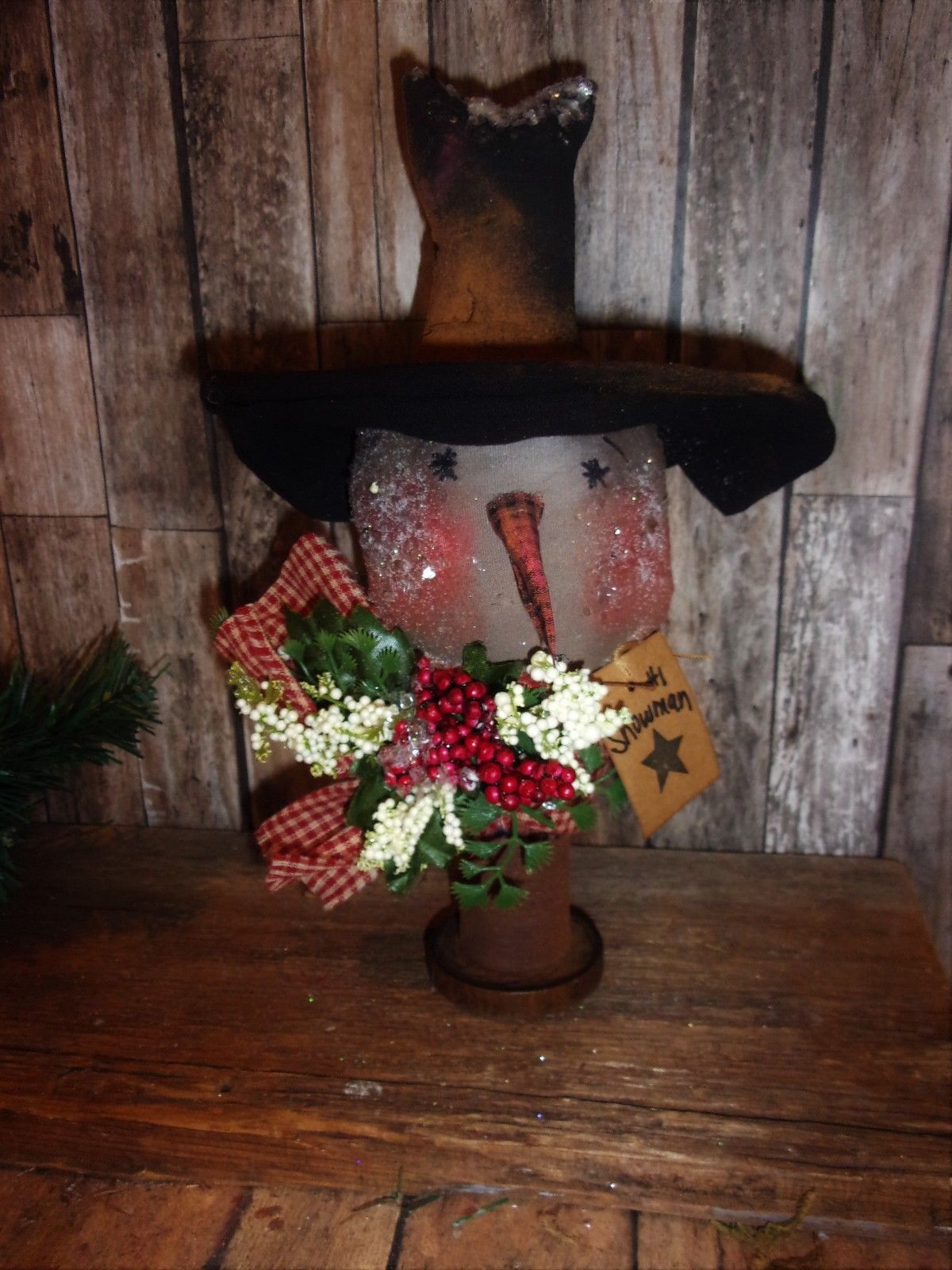Title (ebay affiliate link): ** Primitive Sparkled SNOWMAN BOBBIN 10X6IN Rusty doll **