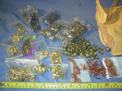 LOT ANTIQUE VTG STEAMER TRUNK PARTS tacks nails brass +