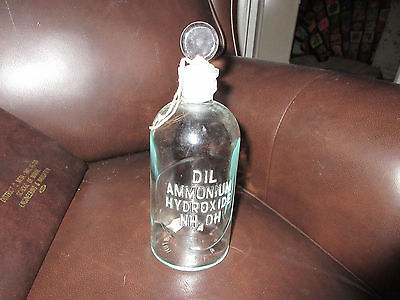 VINTAGE GLASS APOTHECARY BOTTLE w/ GLASS STOPPER AMMONIUM HYDROXIDE l