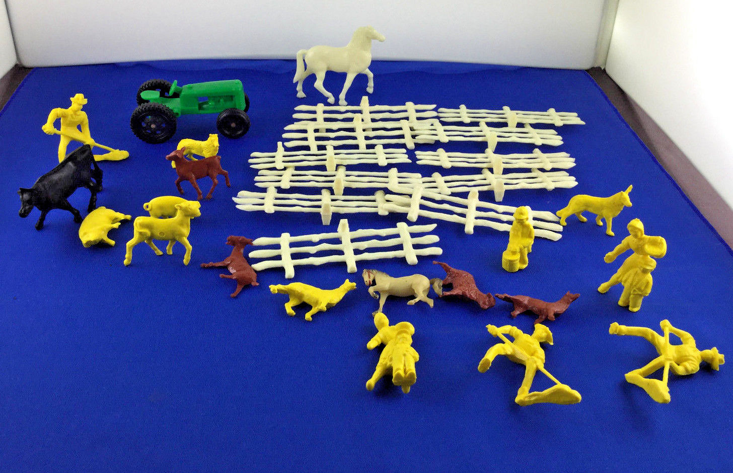 Title (ebay affiliate link): Vintage Farm Play Set~Tractor, Animals, People & Fencing 30+ Pieces