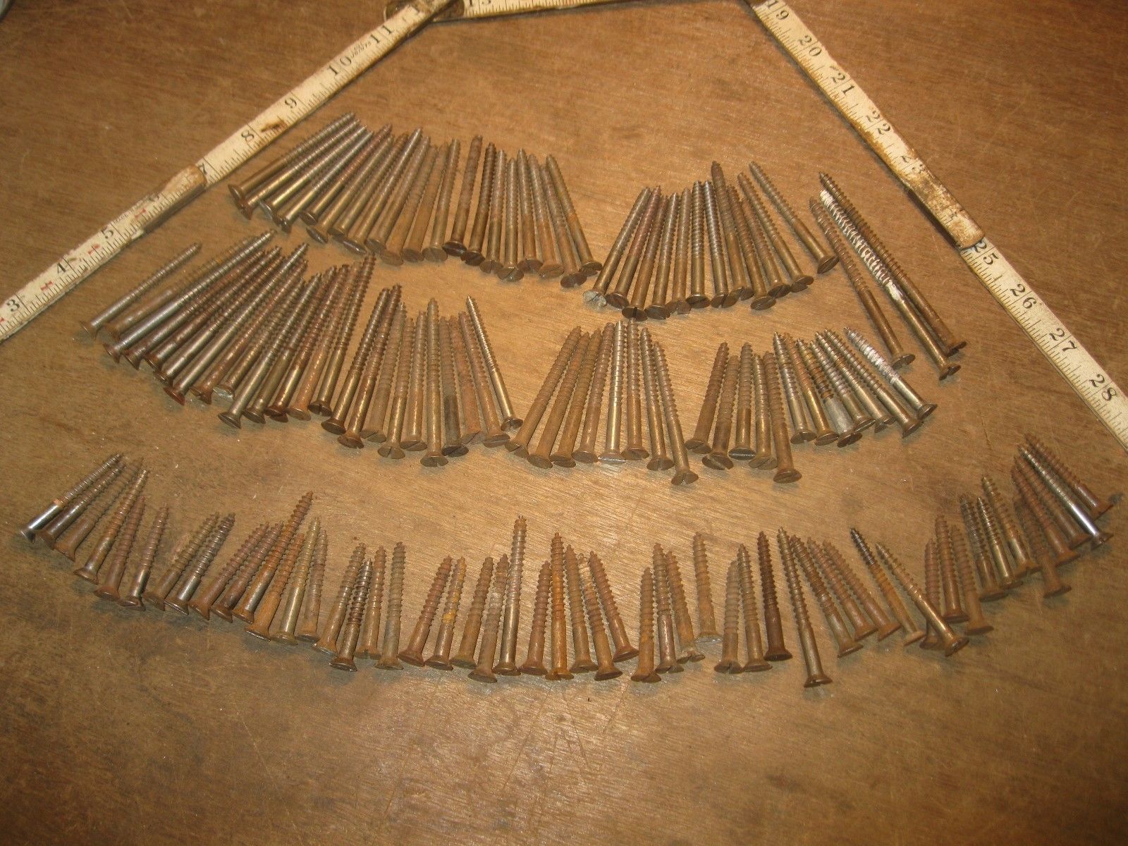 Title (ebay affiliate link): lot antique wood screws vintage flat head furniture woodworking shop hardware