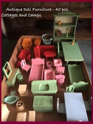 Antique Vtg Wood Art Deco STROMBECKER Doll House Furniture 33 pcs +7 pcs Plastic