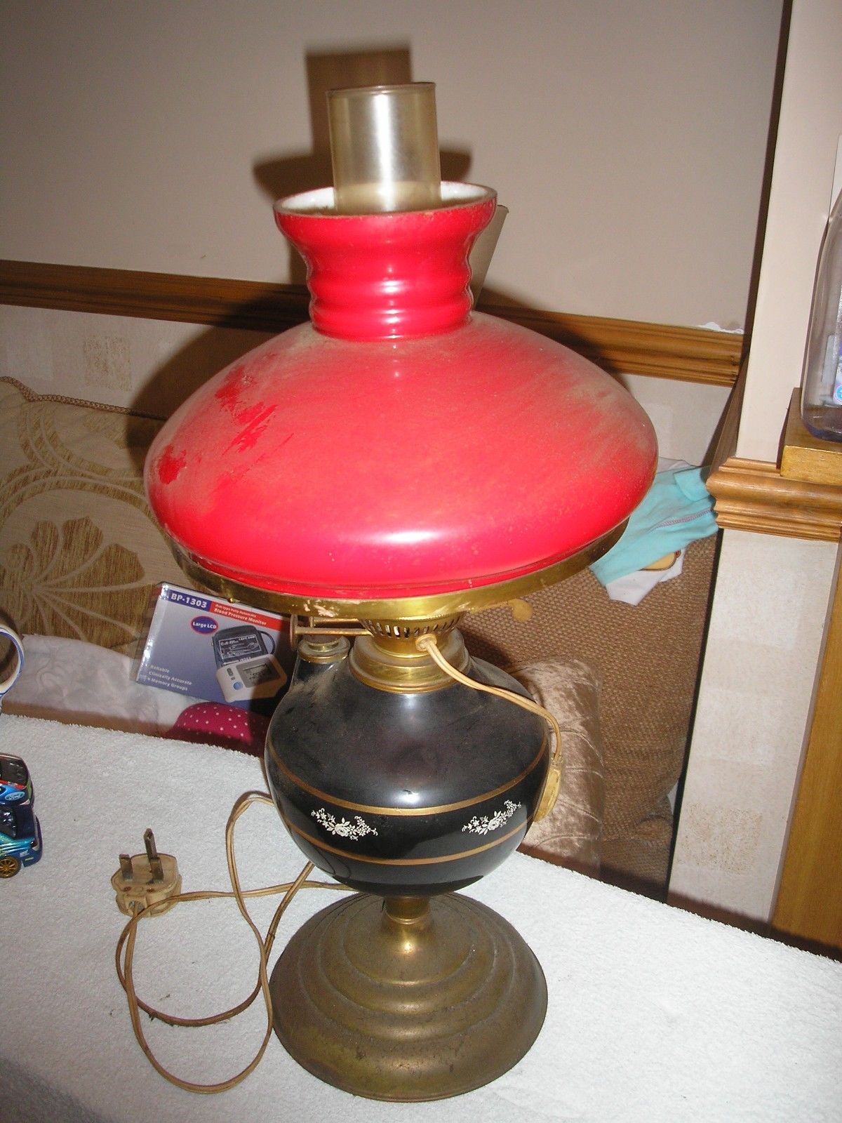 Duplex Converted Oil Lamp with Shade and Chimney