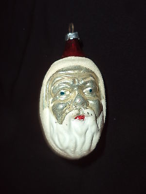 ANTIQUE GLASS SANTA FACE CHRISTMAS TREE ORNAMENT