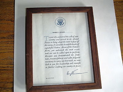 Title (ebay affiliate link): PRES TRUMAN FRAMED COMMENDATION LETTER FOR SOLDIERS AFTER WWII TO NAMED SOLDIER