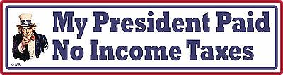 Title (ebay affiliate link): Perfect Bumper Sticker- Trump Paid No Income Taxes