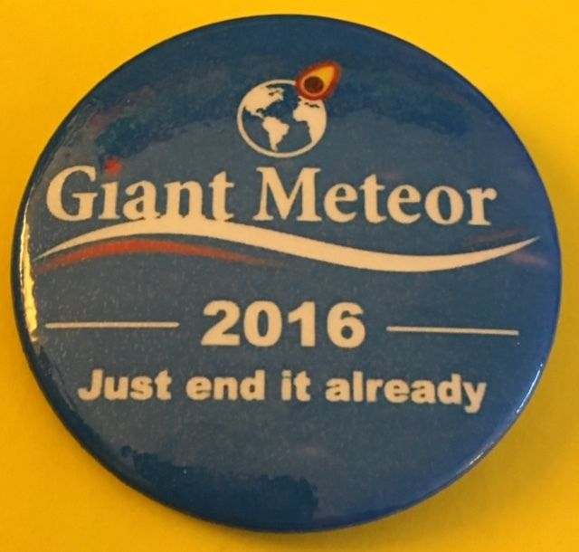 Title (ebay affiliate link): Giant Meteor 2016 Just End It (Election) Already 2 1/4 Inch Pin Pinback Button