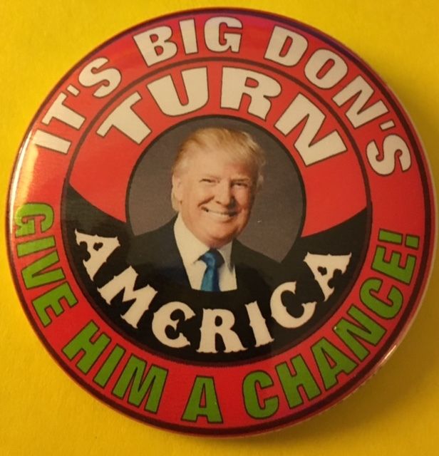Title (ebay affiliate link): Guardfrog Its Big Don's Turn Give Him a Chance 2 1/4" Political Pinback Button