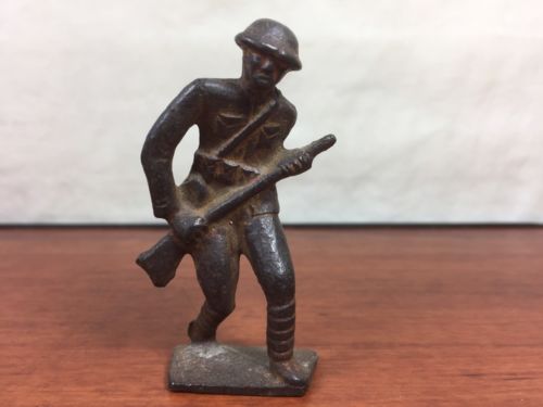 Title (ebay affiliate link): Vintage Collectible Antique WWI Cast Iron Army Infantry Soldier Doughboy Toy
