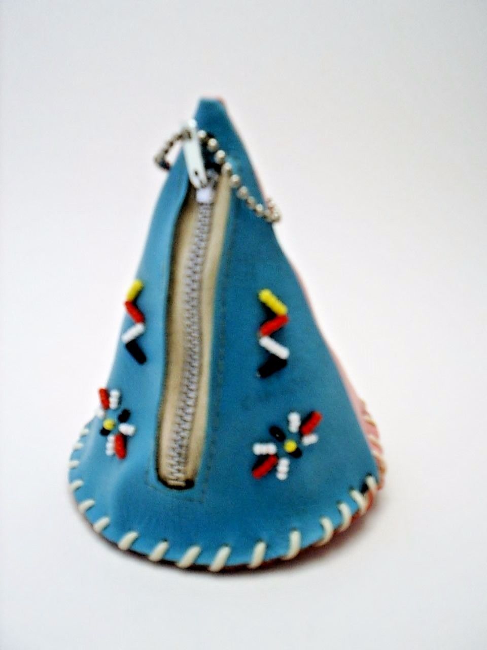 Vintage Indian Tee Pee Key Chain with Beads and Zipper
