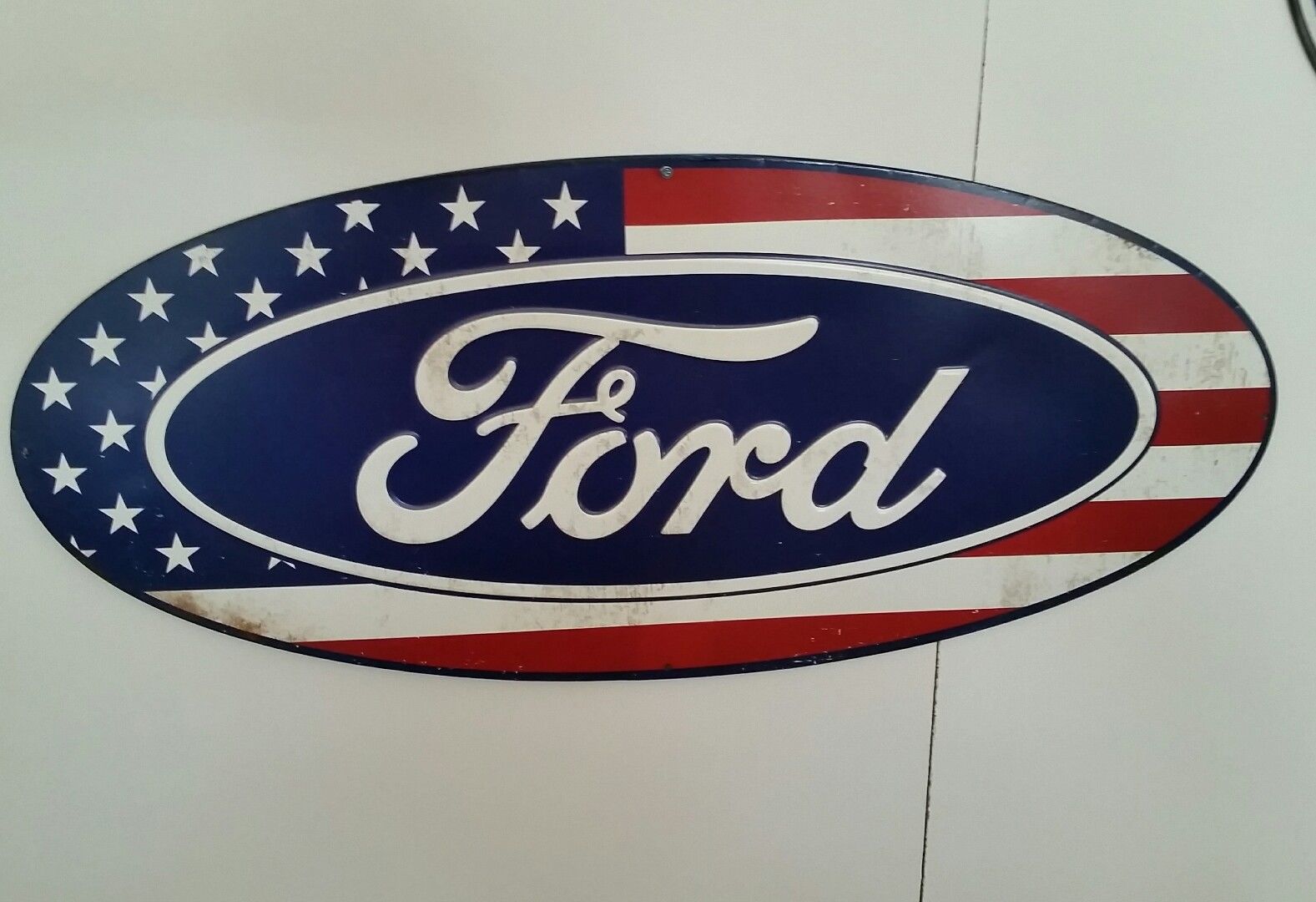 FORD OVAL GRILLE TAILGATE EMBLEM METAL Sign WALL ART AMERICAN FLAG F150 F250
