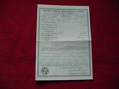 Title (ebay affiliate link): Old Florida car title for 1966 Chevrolet Chevelle dated 1966
