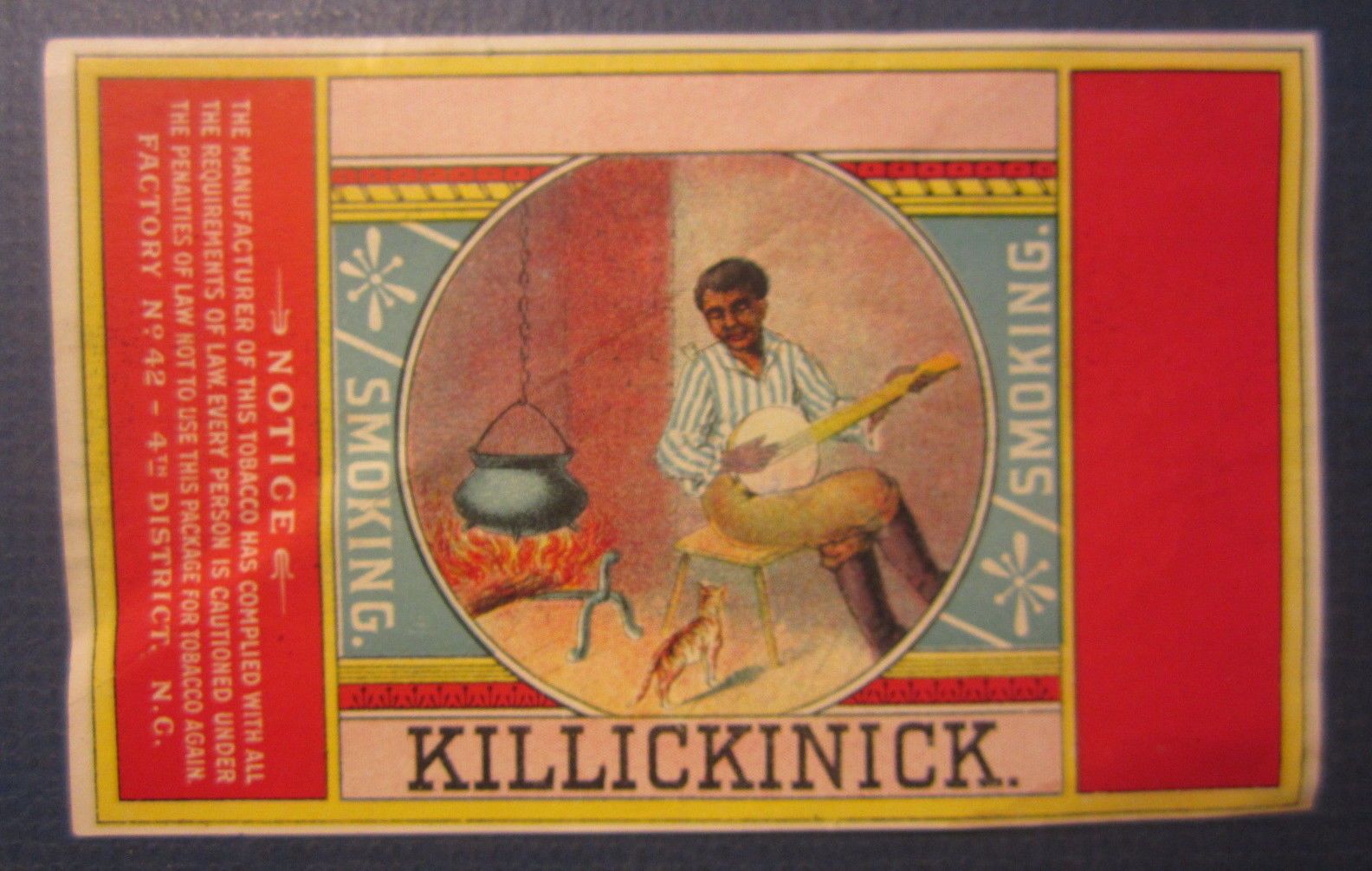 Title (ebay affiliate link): Old Vintage KILLICKINICK Tobacco Package LABEL - Man Playing BANJO - Kettle Fire