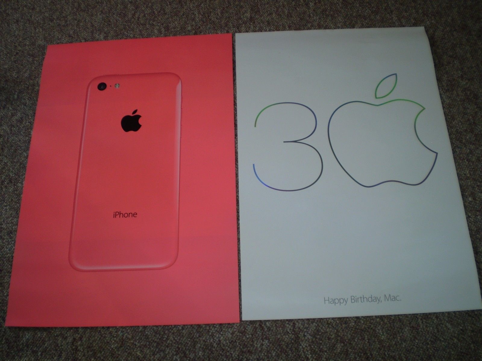 Title (ebay affiliate link): 2 rare APPLE I-PHONE and HAPPY BIRTHDAY MAC promotional display POSTERS