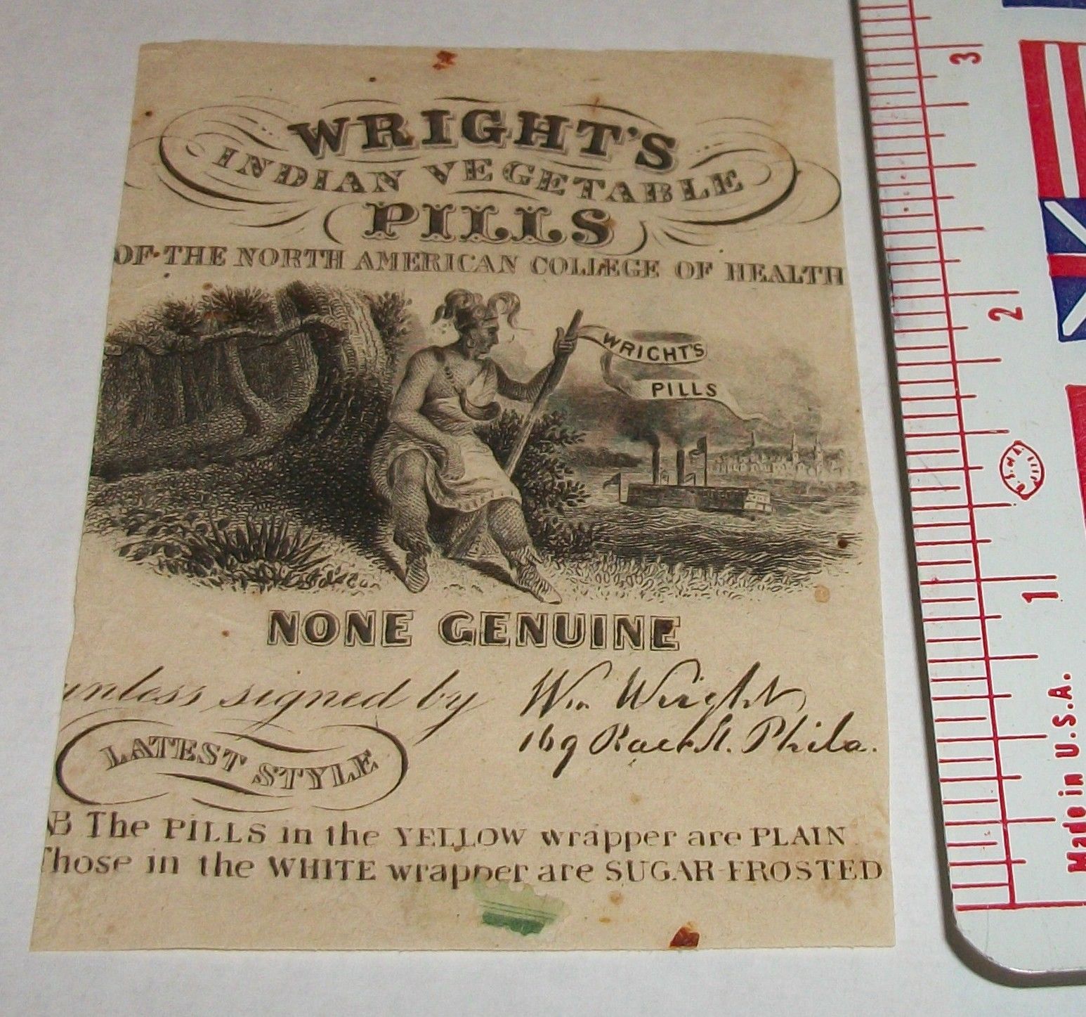 Title (ebay affiliate link): RARE! EARLY 19TH CENTURY LABEL, WRIGHTS INDIAN VEGETABLE PILLS VERY GRAPHIC!!