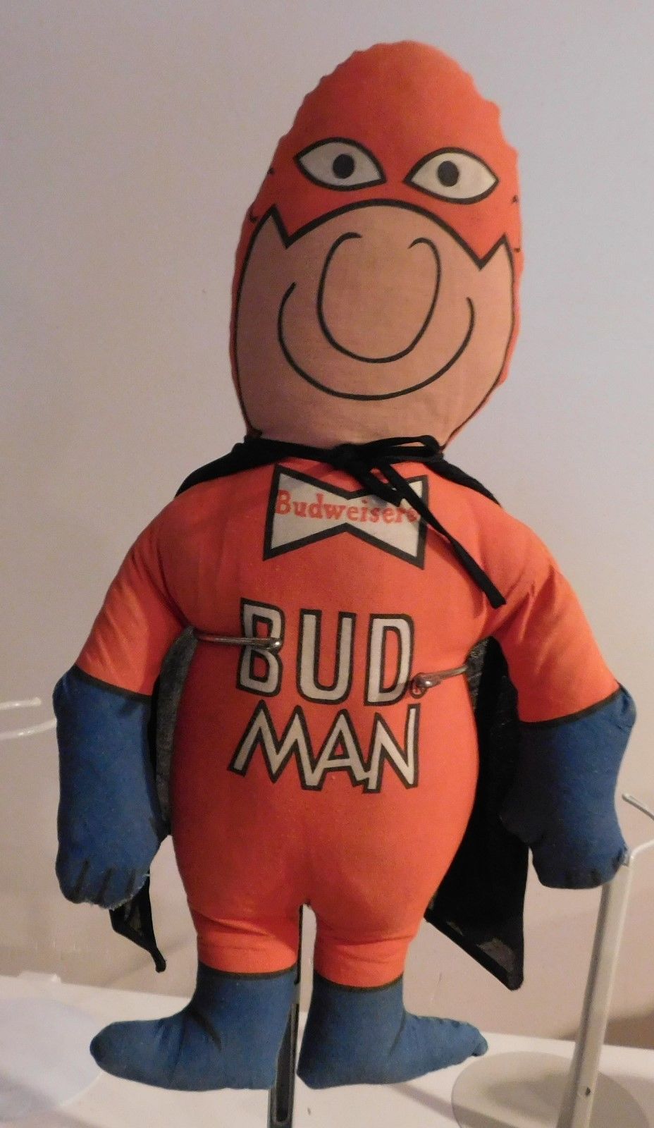 Title (ebay affiliate link): Vintage RARE Budweiser Bud Man Advertising Stuffed Plush Toy w/ Cape