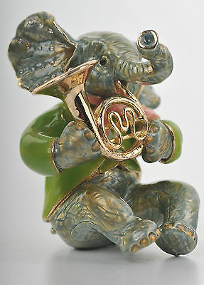 Elephant playing tuba Trinket Box by Keren Kopal Faberge Egg Austrian Crystal